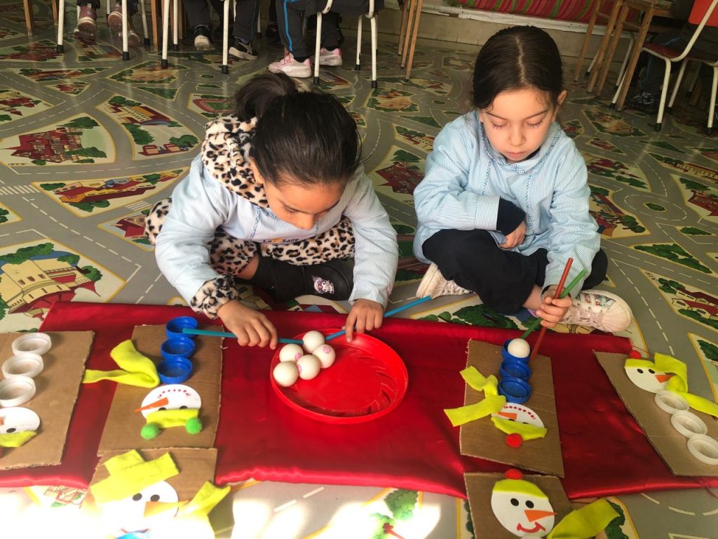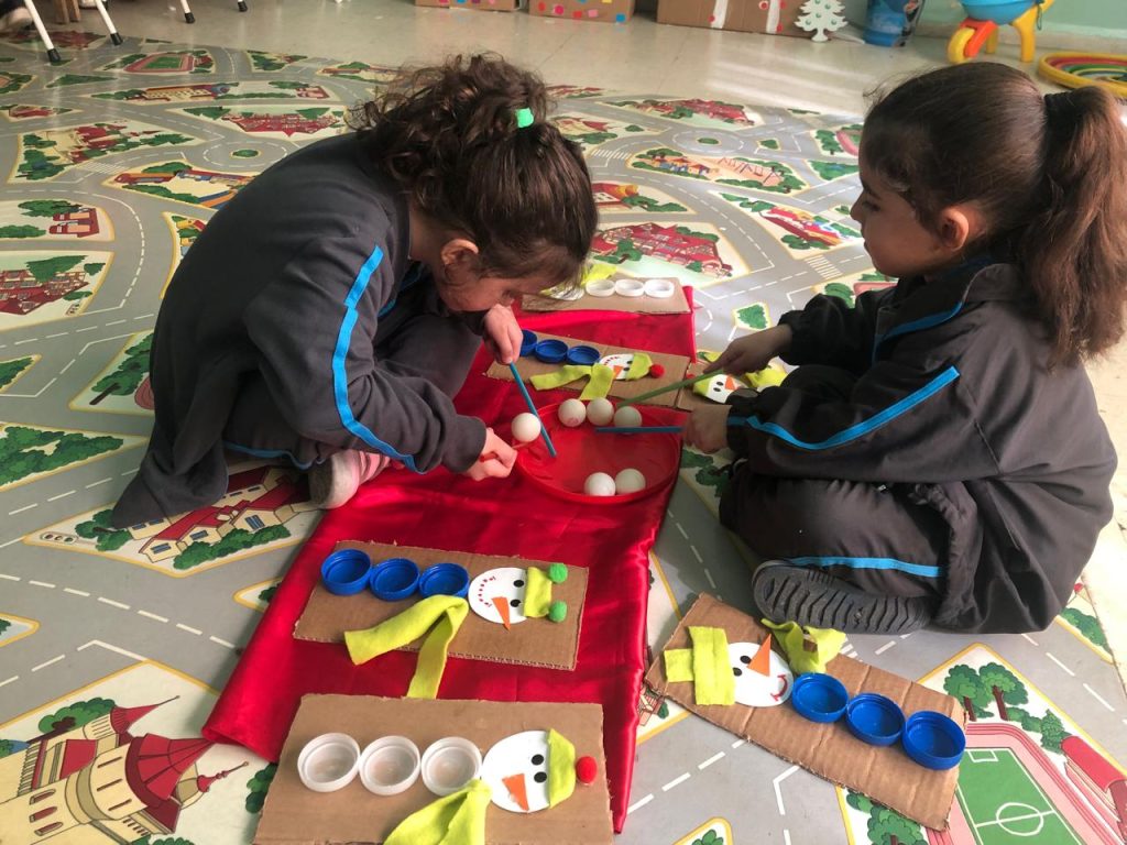 Haricots blancs transvasés avec soin, bonhommes de neige construits capsule après capsule, et enfin… la glace peinte du bout des doigts !